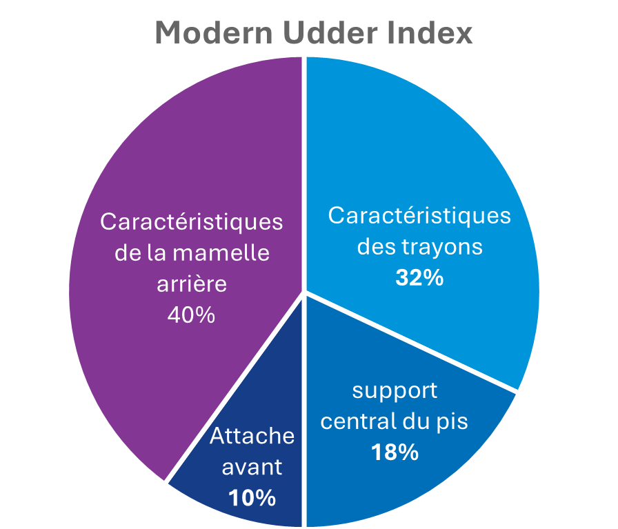 Le MUI, ou Modern Udder Index, a été créé par PEAK Genetics pour les fermes laitières avant-gardistesqui recherchent l’un des éléments suivants, ou les deux :